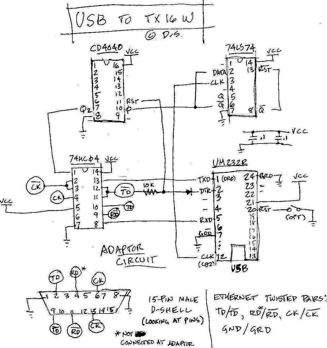 Also, I know the hex inverter is far from an ideal RS-422 interface chip, but it works. (Note that the hex inverter in the photos of my boards is wired differently than that shown on the schematic.)